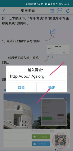 l 输入网址:upc.17gz.org,然后点击“确定”。