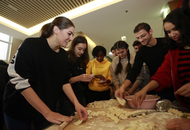 2018年12月22日上午,学院开展了中国传统文化主题活动,组织国际学生包饺子、过冬至。 在留学生公寓一楼大厅内,60多位来自俄罗斯、哈...